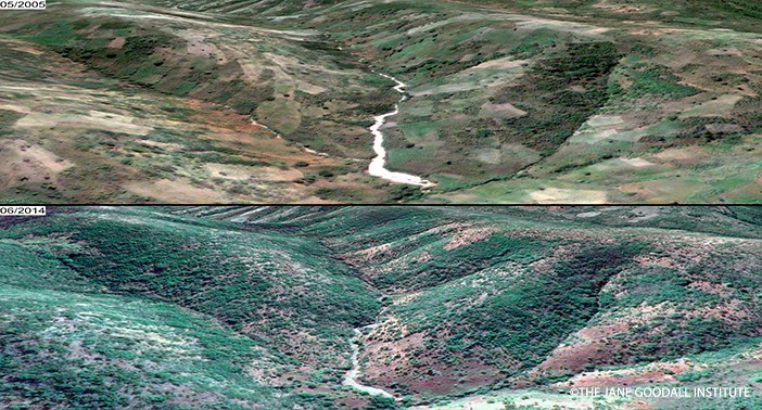 Forests are so much more than the “lungs of the earth.” The balance of all that allows life to flourish on Earth is dependent upon the function of forests, for more reasons than you may know. Global forests are in fact the mechanism that absorbs much of the excess carbon emissions and releases oxygen into the atmosphere. Deforestation and forest degradation contributes as much as 30 percent of global greenhouse gas emissions each year – rivalling emissions from transportation globally. The importance of tropical forests because of their size and geography, including their ability to store carbon and thereby slow climate change, cannot be emphasised enough. At the 2018 Global Climate Action Summit, Dr. Goodall and JGI are taking a stand – the forgotten solution is seeing the trees for the forest, and we must do something to protect these environments before it is too late.